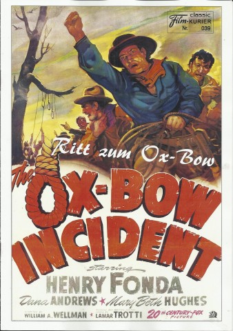 039: Ritt zum Ox - Bow ( William A. Wellman ) Henry Fonda, Dana Andrews, Harry Morgan, Frank Conroy, Harry Davenport, Anthony Quinn, Francis Ford, William Eythe, Mary Hughes, Jane Darwell, Marc Lawrence, Paul Hurst, Chris-Pin Martin, Stanley Andrews, Leig